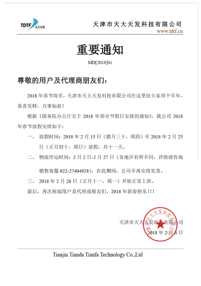 2018年春節重要通知